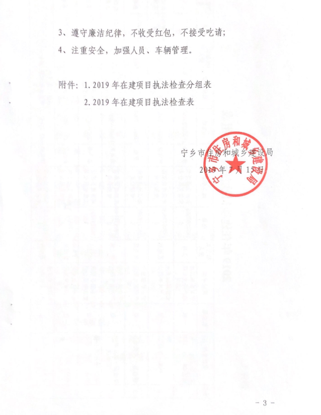 《关于对全市在建项目进行执法检查的通知》(宁住建[2019]12号